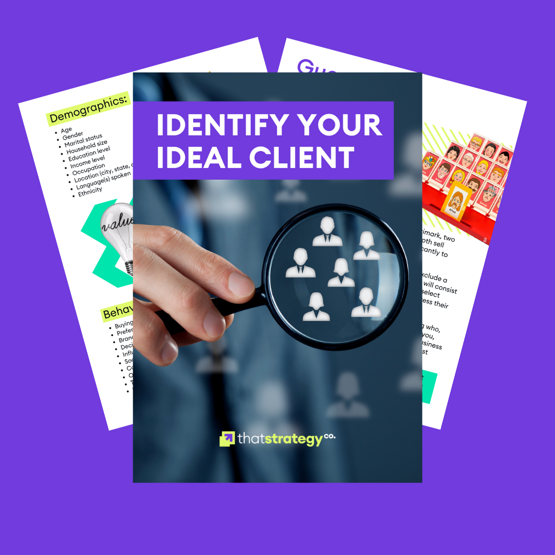 Introducing our exclusive guide, "Identify Your Ideal Client." We've compiled a comprehensive PDF guide that will provide you with 100 essential facts you should know about your ideal client. No more wasted time on guesswork; this resource will empower you to spend less time thinking and more time taking strategic actions for your business.